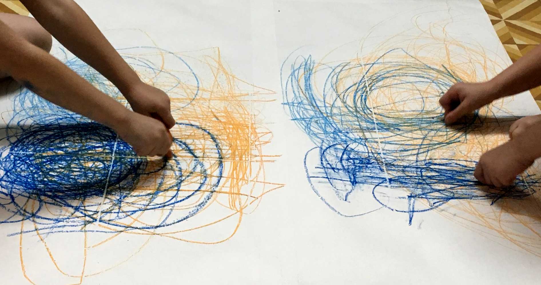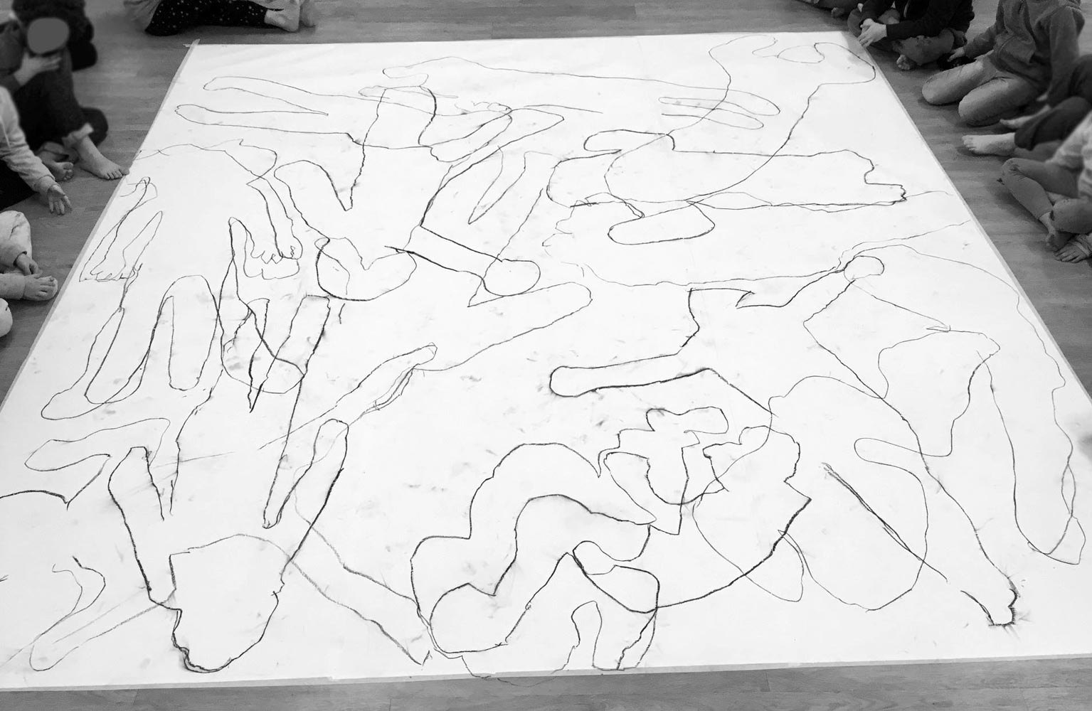 Using different languages and mixing them together can be a beautiful thing. Especially when it is the language of movement and the language of drawing. Individually, in pairs or as a group we investigate the relationship between these two languages on huge sheets of paper and small ones as well.