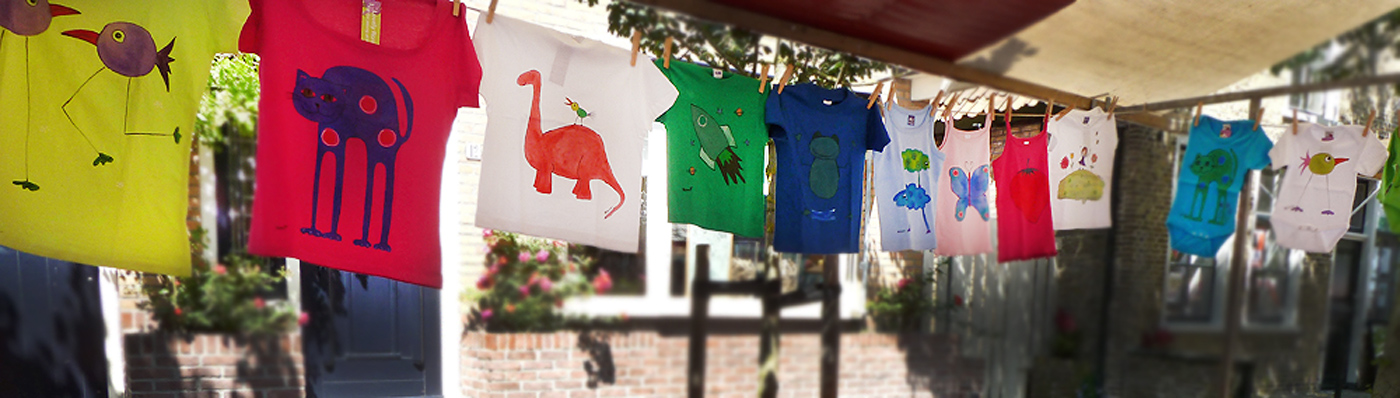 I made drawings on T-shirts and other garments for babies, kids, and adults. I also sewed baby blankets, pillow covers and curtains on which I painted. My collection included shelves, mirror frames and stools as well.